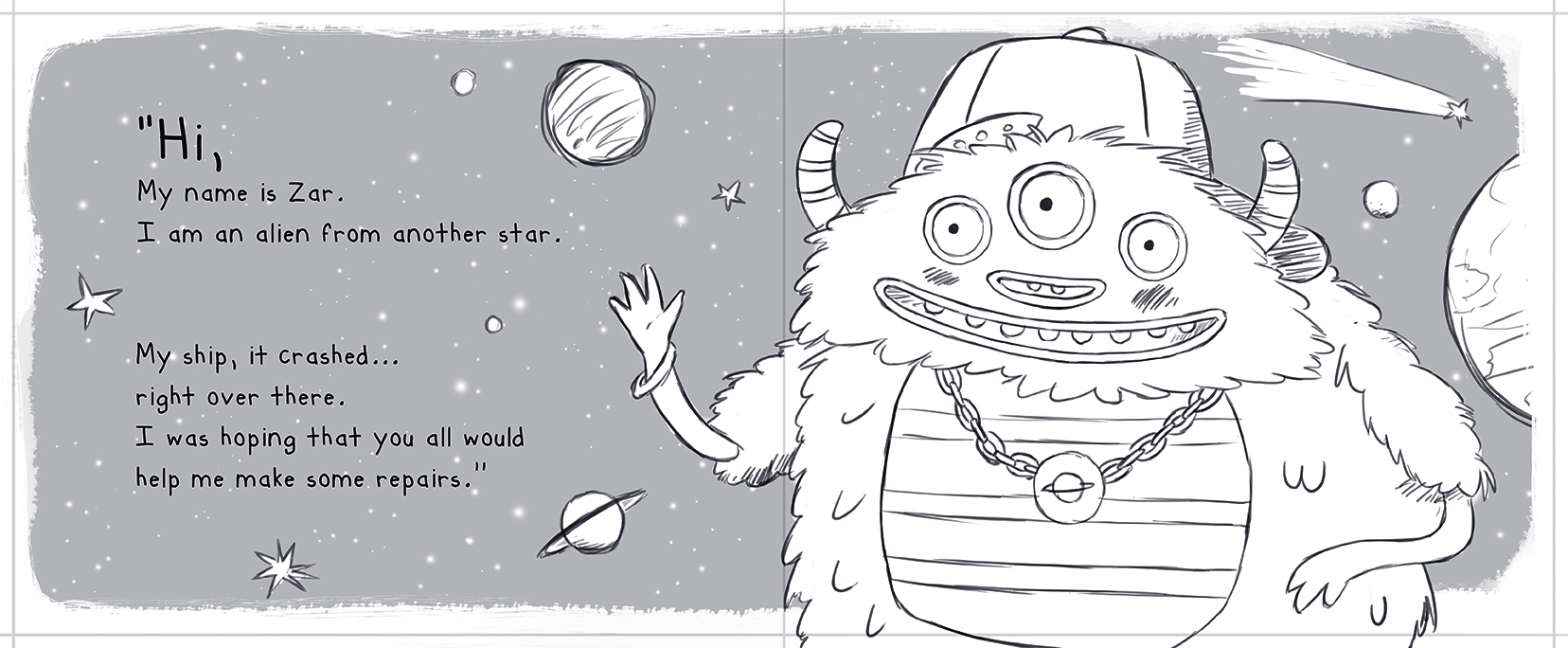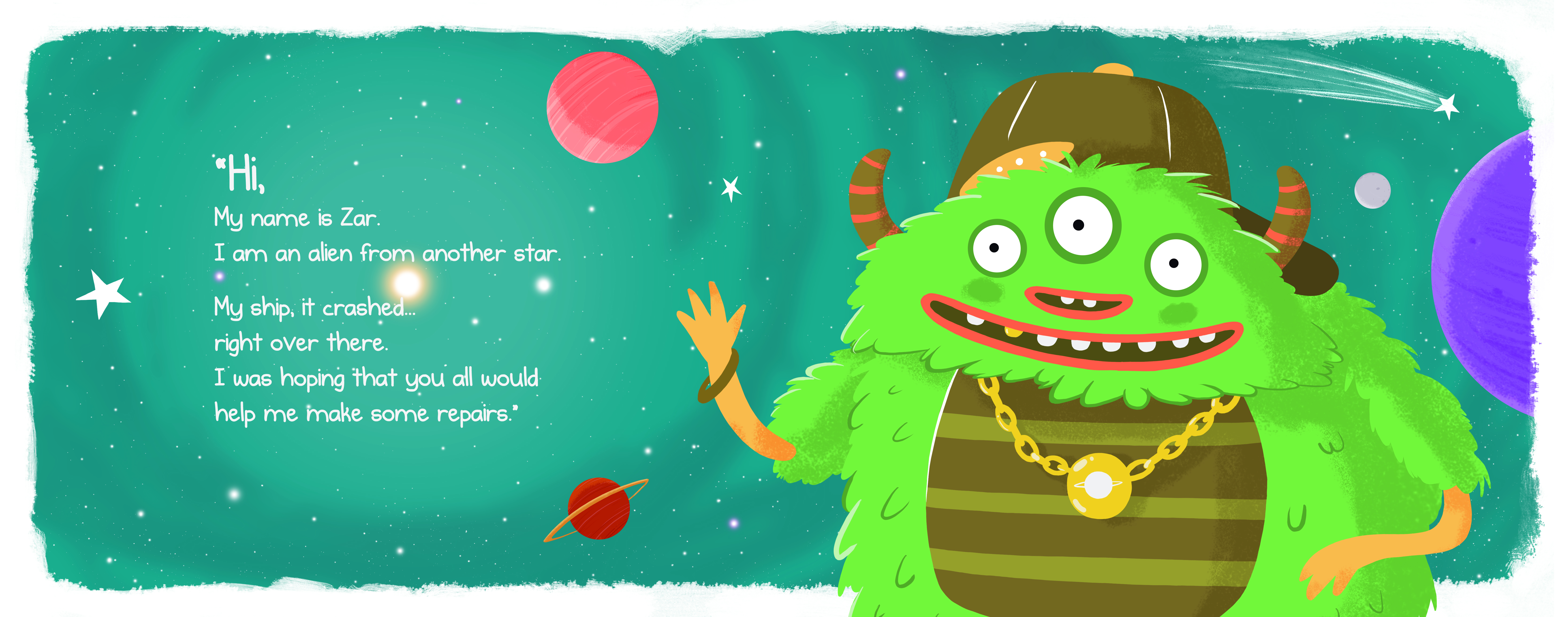Children's book inspired by the music video - Zar and the broken spaceship.